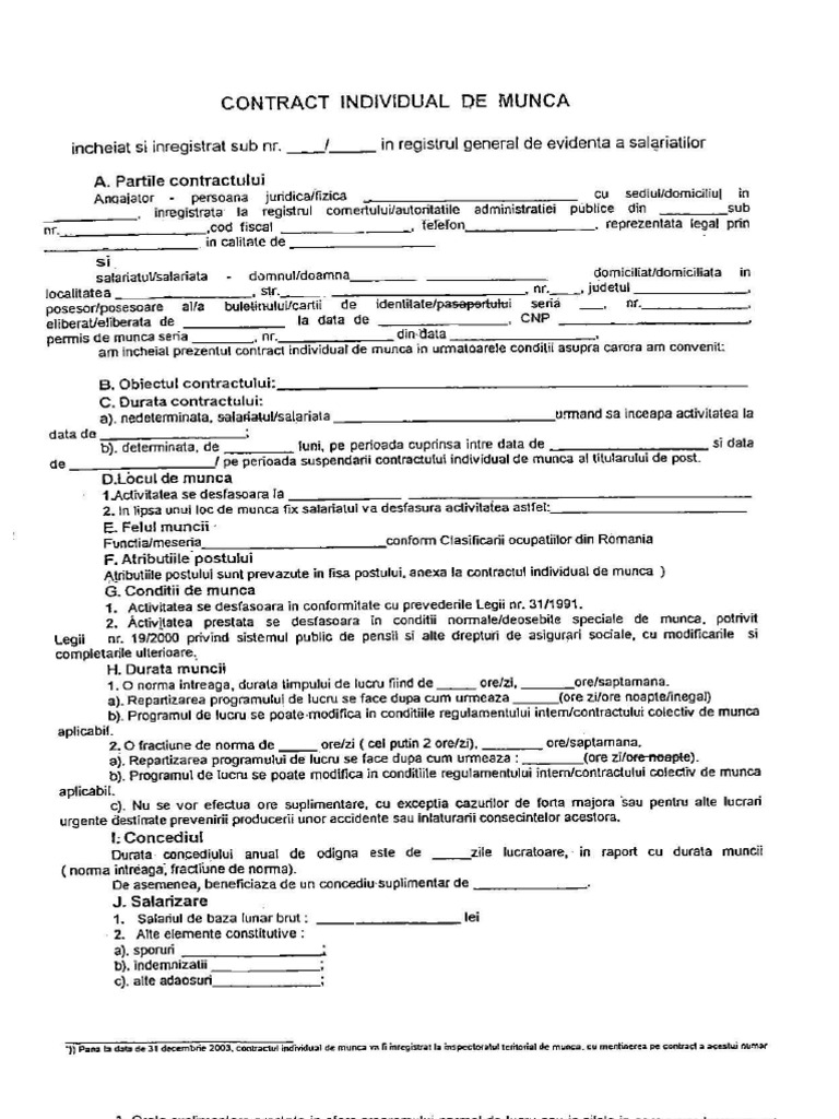 Contract Individual De Munca 2019. Contractul individual de munca se incheie in baza consimtamantului partilor, in forma scrisa, in limba romana, cel tarziu in ziua anterioara inceperii activitatii de catre salariat, iar obligatia de incheiere a contractului individual de munca in forma scrisa revine angajatorului. 10 din codul muncii, contractul individual am incheiat prezentul contract individual de munca in urmatoarele conditii asupra carora am convenit: Contractul individual de muncă este acel contract prin intermediul căruia o persoană fizică numită angajat, se angajează să efectueze lucrări sau servicii pentru o persoană fizică sau juridică, numită angajator(d), în regim de dependență, de subordonare juridică față de acesta, și în același timp. Un angajat al întreprinderii activează din anul 2017 în bază unui contract individual de muncă prin cumul. Download formular model de contract individual de munca in format pdf, word, doc,.