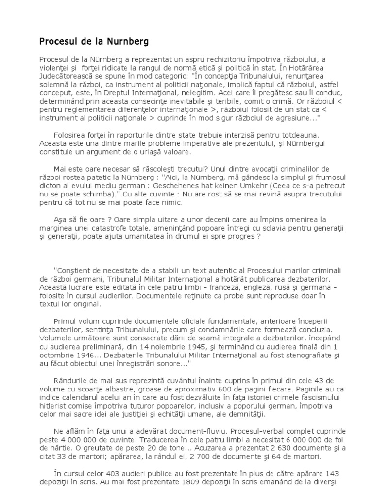 Faptele vorbesc de la sine, iar judecatorul nu le poate ignora doar pentru a lua o decizie pe placul cetatenilor germani care doreau o coabitare cat mai. Procesul de la nürnberg carte / joe heydecker, johannes leeb. Bucureşti , 1996 , editura orizonturi :