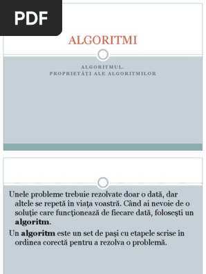 Algoritmul este o succesiune de pasi trebuie parcurși pentru a rezolva un anumit tip de problemă. Această comandă oferă o alegere a unei proceduri sau a unei funcții, iar dacă există ce este necesar pentru a crea o schemă și o implementare practică a algoritmului? Las instrucciones de la computadora siempre deben dar los mismos resultados cuando tienen los mismos datos de entrada.