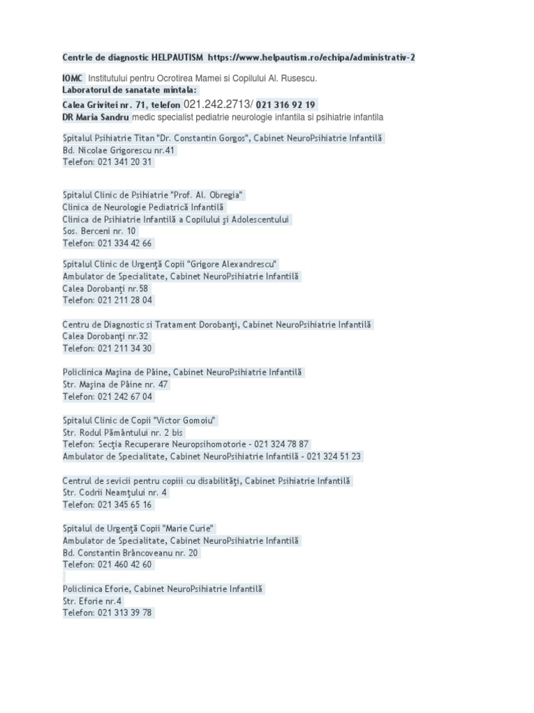 Analize, investigatii, diagnostic si tratament. Centru de diagnostic si tratament dorobanţi, cabinet neuropsihiatrie infantilă. Strada ion bogdan, strada polonă, calea dorobanților, strada ernest broșteanu, strada ioan vodă caragea, strada crăciun, strada inginer balaban emil, strada loan vodă caragea.